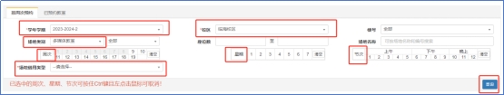 (2)“场地预约申请”,请在弹出页面选择“学年学期、校区、场地类别”等信息,然后选择“查询”。