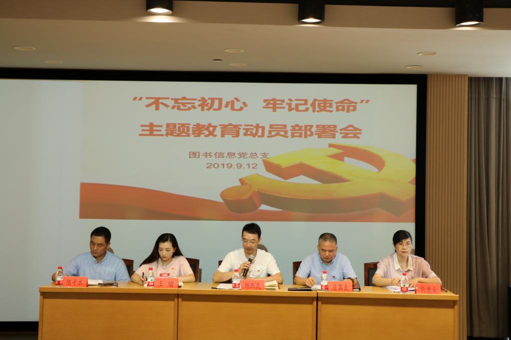 9月12日上午,图书信息党总支在图书馆六楼影音阅览室召开“不忘初心牢记使命”主题教育活动动员部署会,会议由党总支书记杨跃民同志主持,总支全体党员和部分教职工代表参会,校“不忘初心、牢记使命”主题教育巡回指导组王瑜同志参加会议。