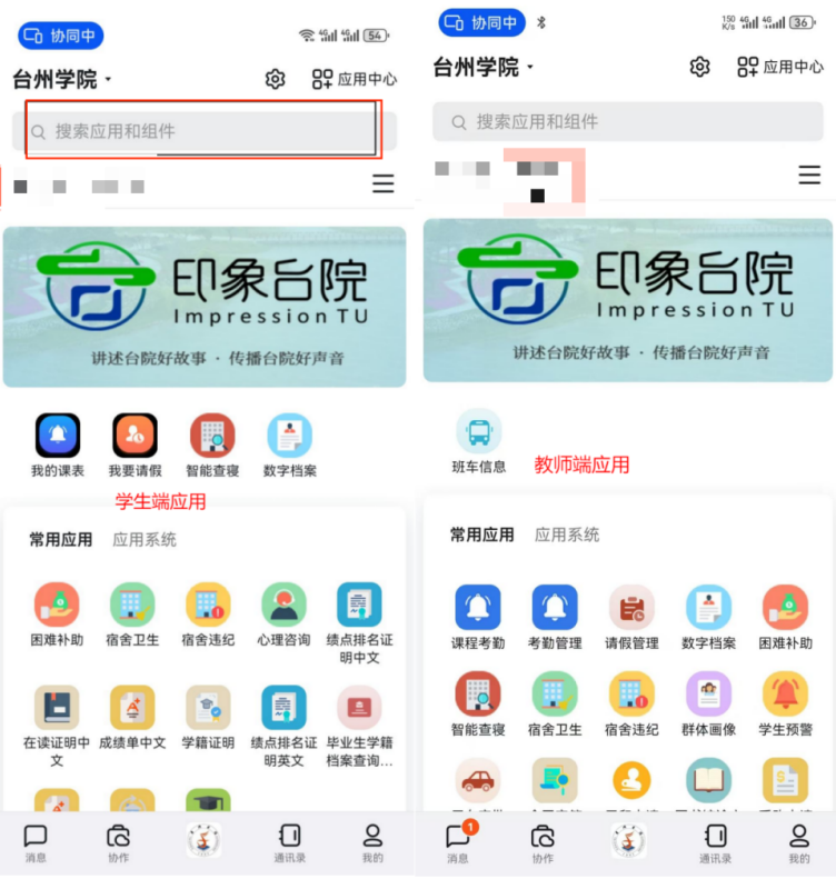 应用系统版块以系统形式集成了“上课啦”“台院学工”“OA”“网上办事大厅”“人事系统”“教务系统”等应用系统。