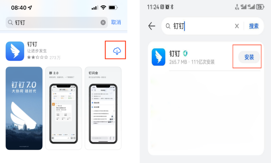 通过手机应用市场(安卓)或应用商店(苹果)搜索“钉钉”APP,下载安装钉钉APP。
