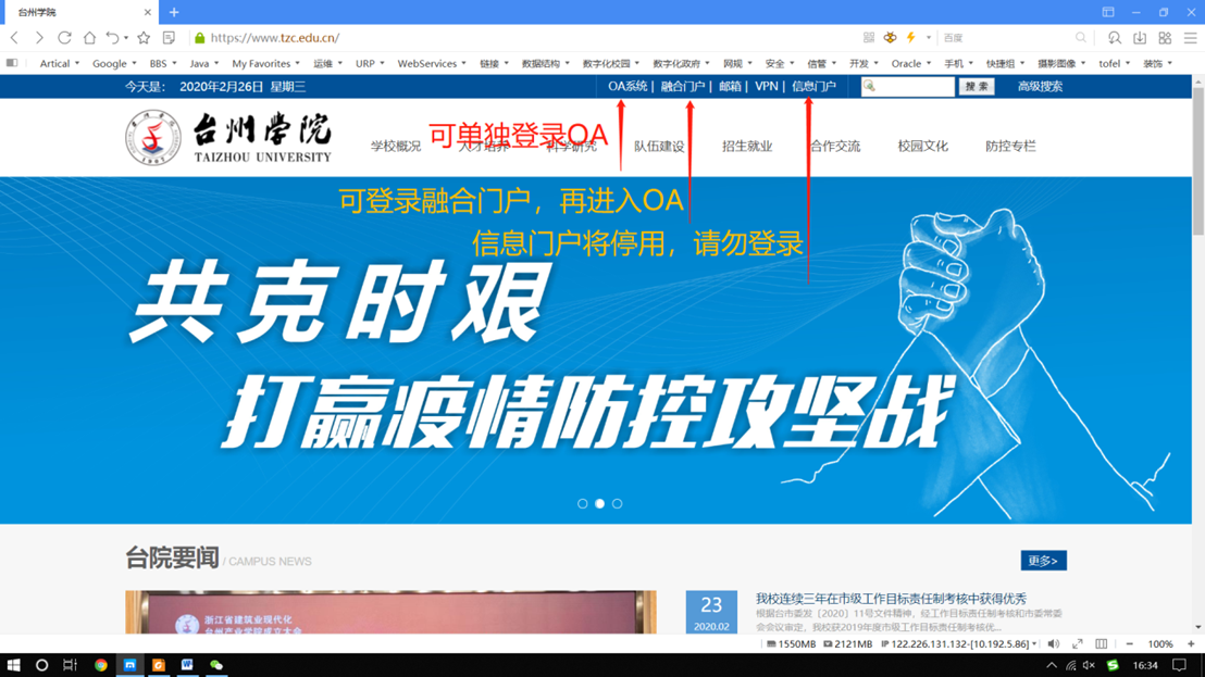 OA系统可从两个入口登录,如下图所示: