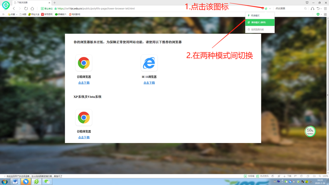 支持各种浏览器极速和兼容模式 |